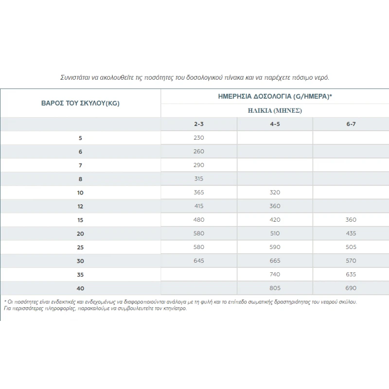 -Για νεαρούς σκύλους φυλής μεσαίου μεγέθους (σωματικό βάρος ενηλίκου 11 - 25 kg), ηλικίας από 7 έως 12 μηνών.