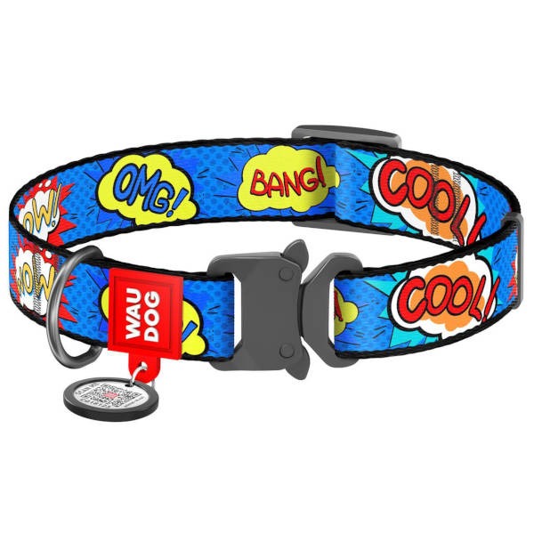 Nylon περιλαίμιο με σχέδια της DC, με μεταλλικό κούμπωμα ασφαλείας και αδιάβροχο.