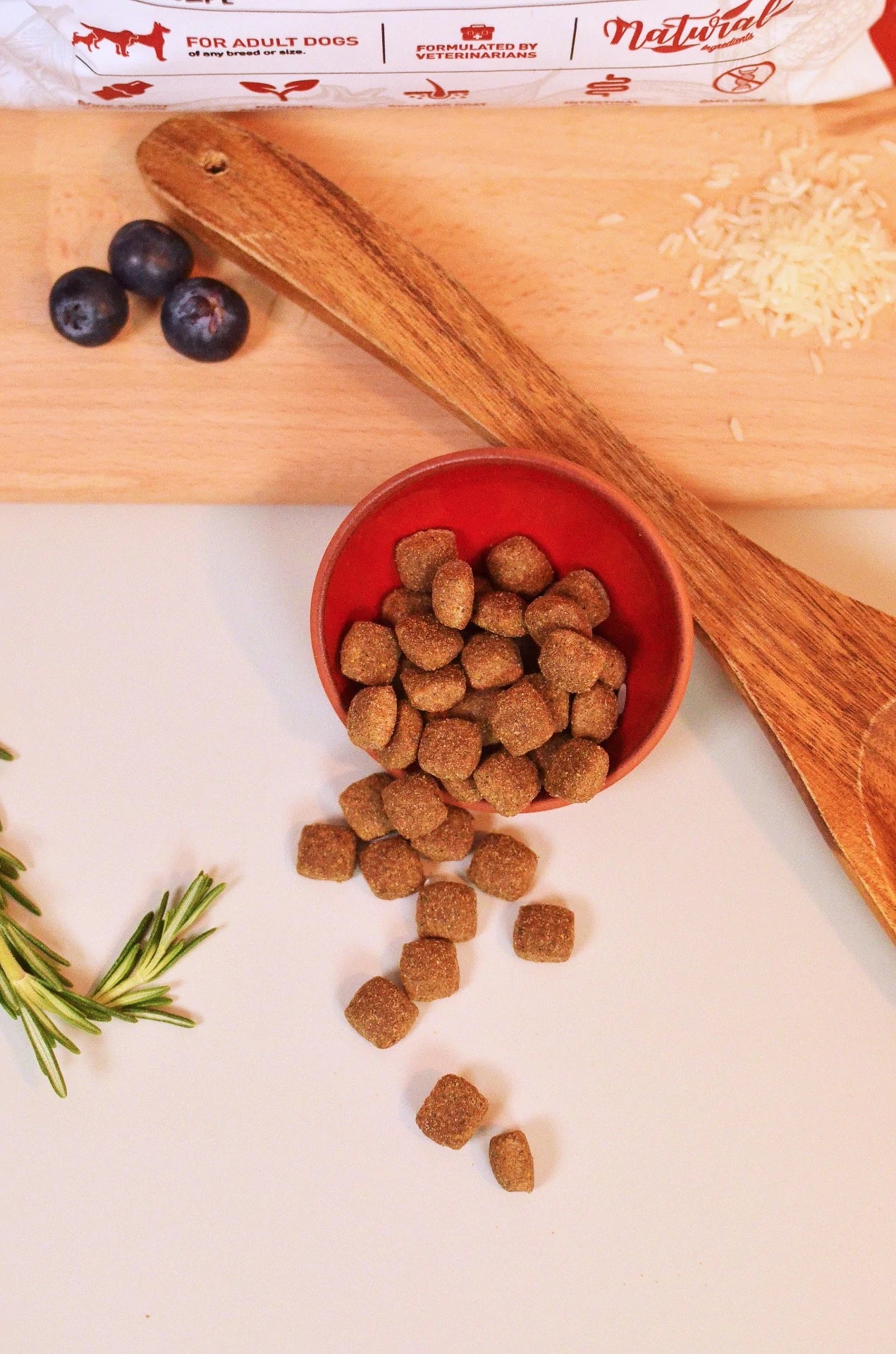 πρώτη πηγή ζωικής πρωτεΐνης, και επιπλέον περιέχει φρούτα, λαχανικά και βότανα που προάγουν την πέψη, το ανοσοποιητικό σύστημα και τη φροντίδα του δέρματος και του τριχώματος. Κατάλληλο για ενήλικους σκύλους οποιασδήποτε ράτσας ή μεγέθους.